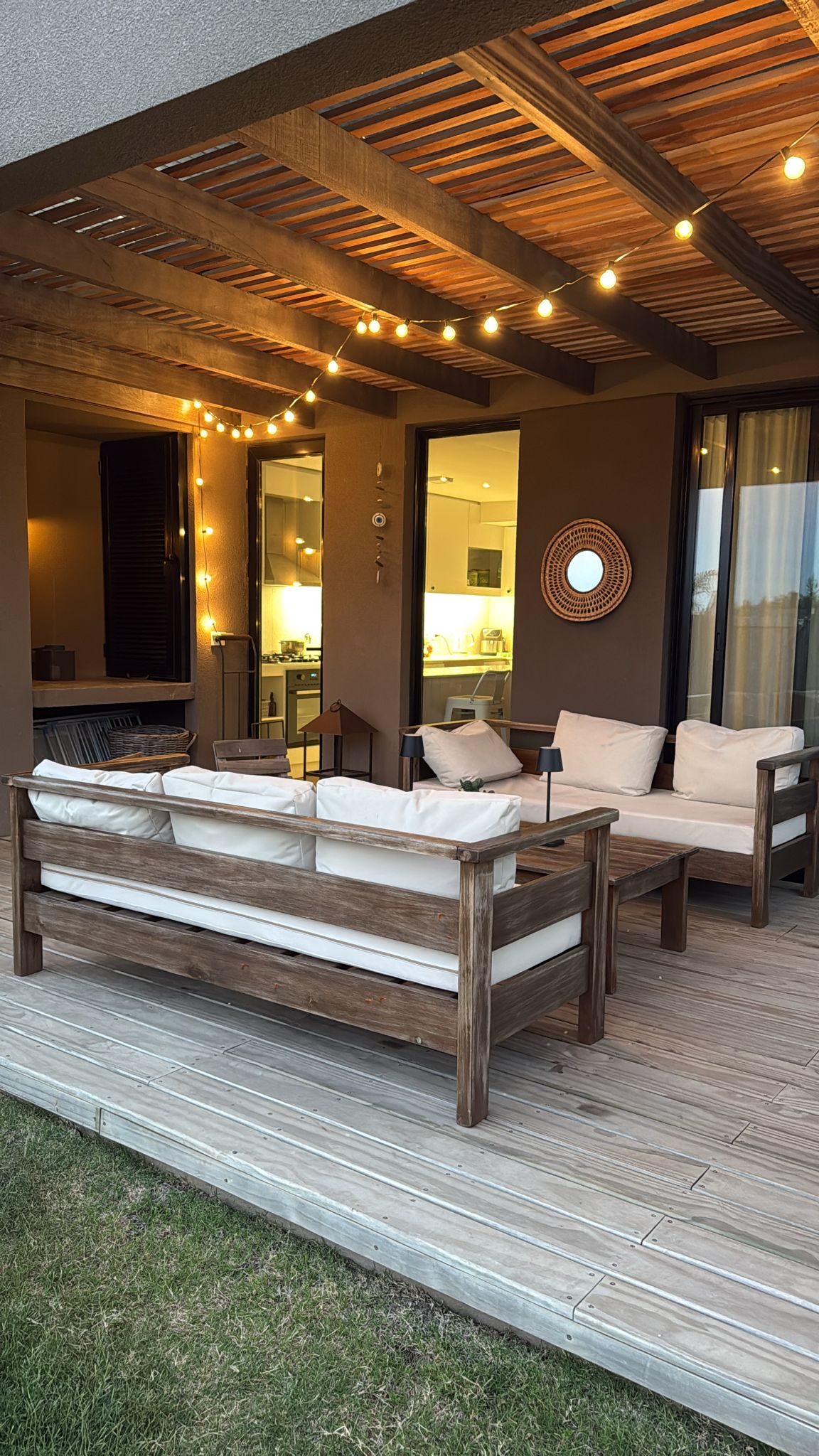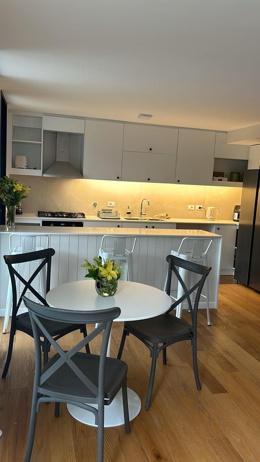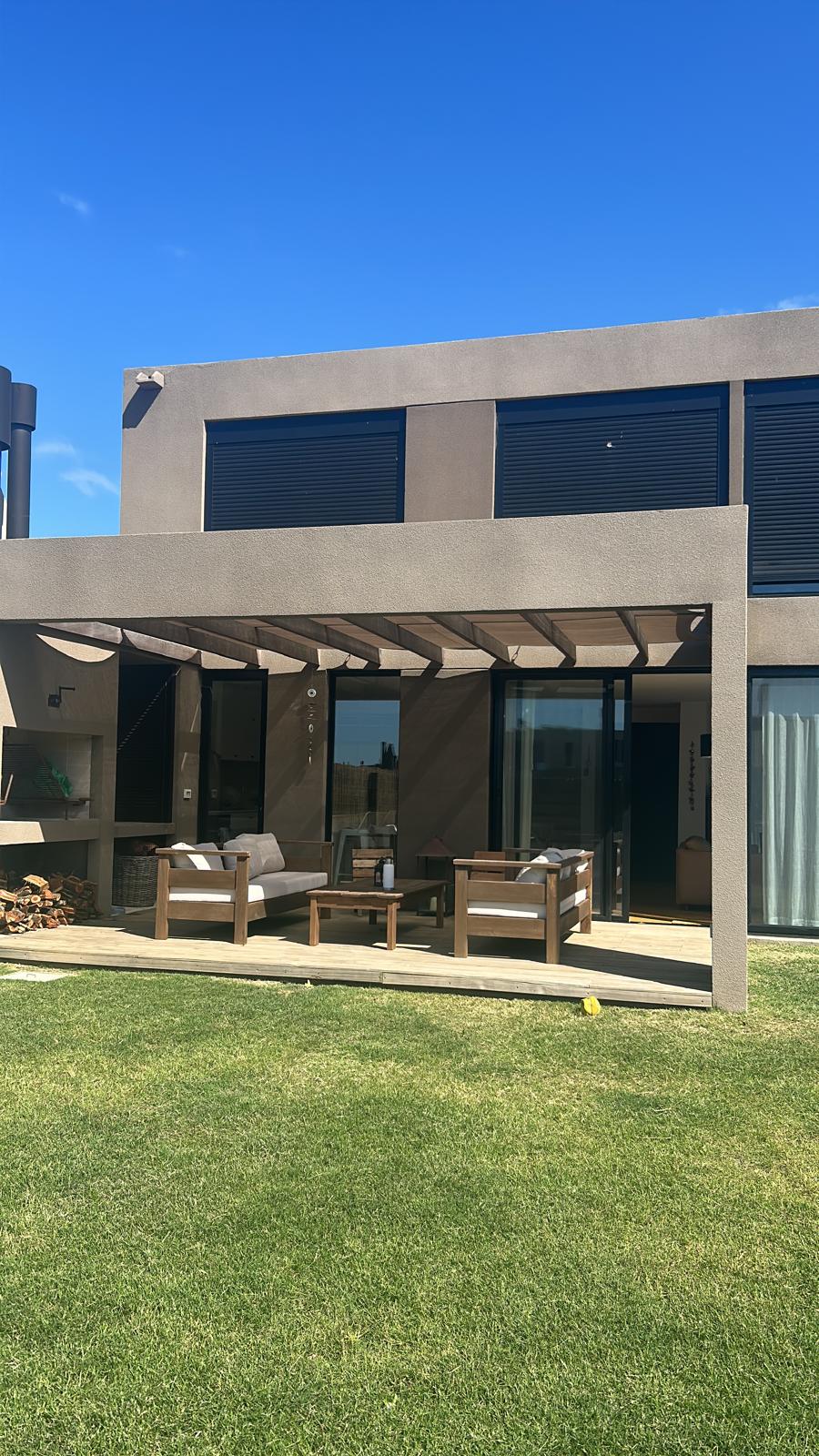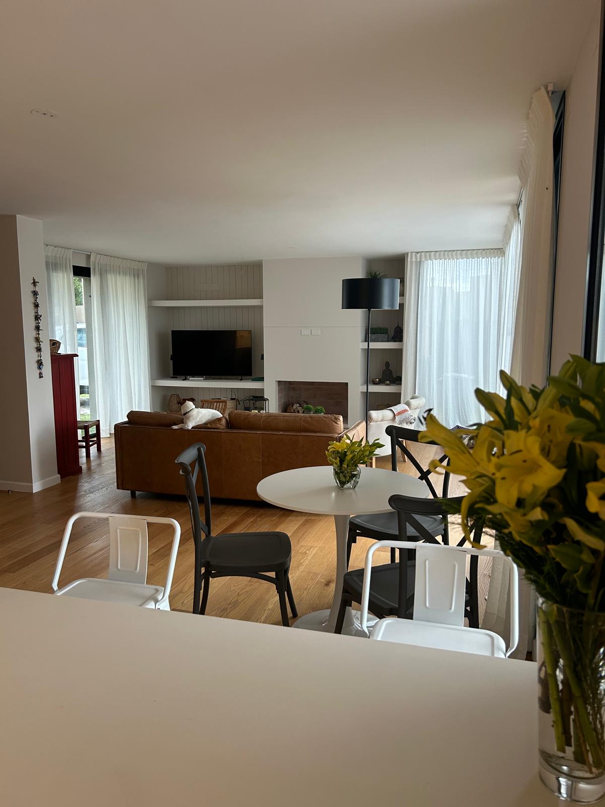 Planta baja: Amplio y soleado Living comedor con estufa a leña, Cocina integrada equipada con : anafe a gas, horno eléctrico, campana, conexiones para lavavajillas, Toilette y salida a pérgola techada con parrillero.