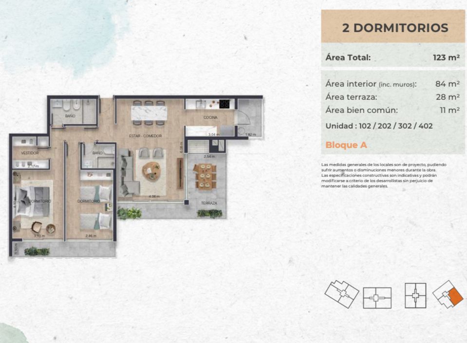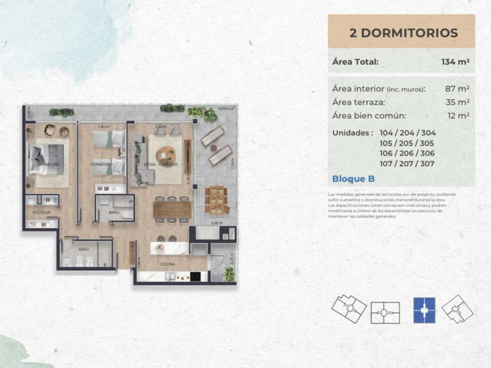 Apartamentos de 2 y 3 dormitorios, modernos, luminosos y de materiales nobles , rodeados de espacios naturales. Amplias Terrazas con parrillero en todas las unidades