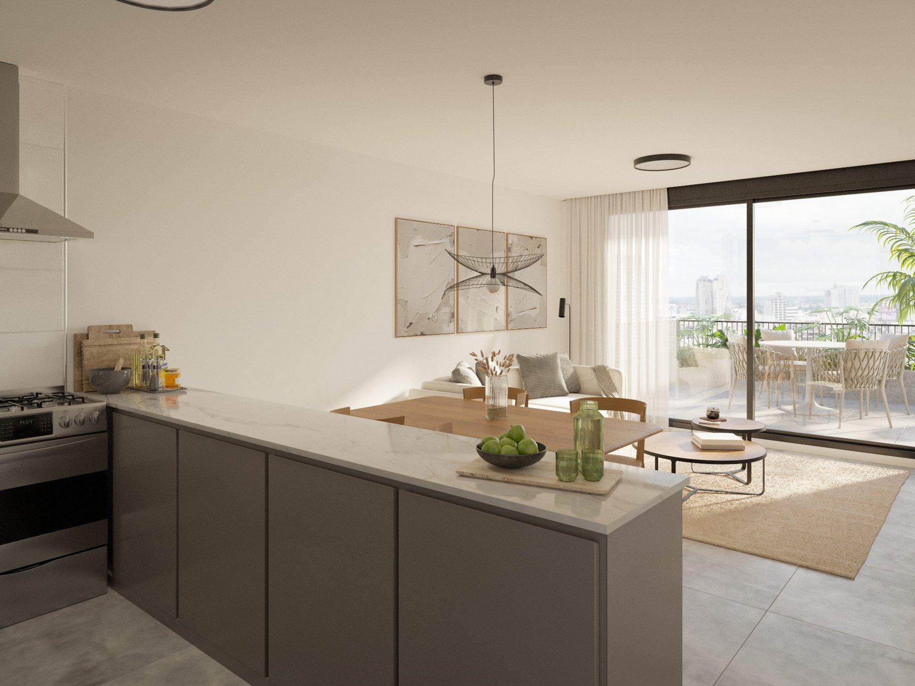El proyecto ofrece unidades modernas, con espacios bien resueltos, presencia de terrazas y una estética actual que prioriza la luz natural y la calidad de vida. Además, cuenta con beneficios de vivienda promovida, lo que permite acceder a importantes exoneraciones impositivas y bajos costos de ingreso, sin gastos de ocupación ni conexiones.