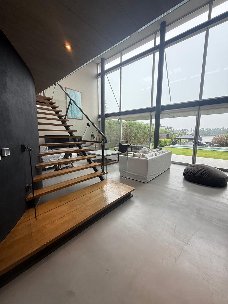 Hermosa casa de estilo industrial en Nordelta desarrollada en dos plantas , con amarra propia y salida directa al río Lujan.